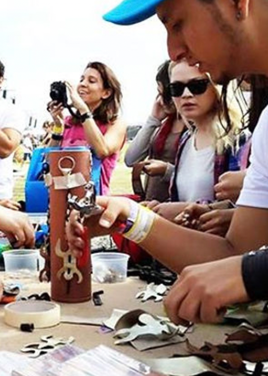 Le cuir utilisé dans cet atelier est 100% déchet industriel, et a été donné par la société SADESA S.A. Grâce à la conception et aux technologies CNC (découpe laser), ces rebuts ont été valorisés pour développer de nouveaux produits.